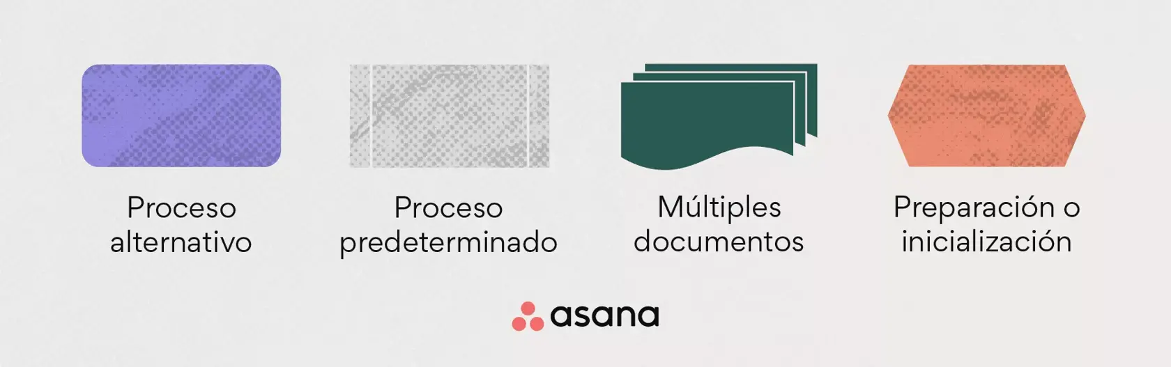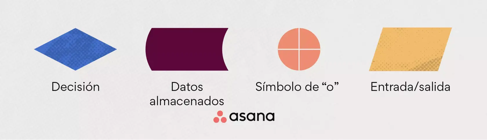 Decisión: Este símbolo representa a una decisión que tu equipo o tú deben tomar para pasar al paso siguiente del proceso. Por lo común, se trata de una decisión del estilo “verdadero o falso” o de una pregunta que se responde por sí o por no.